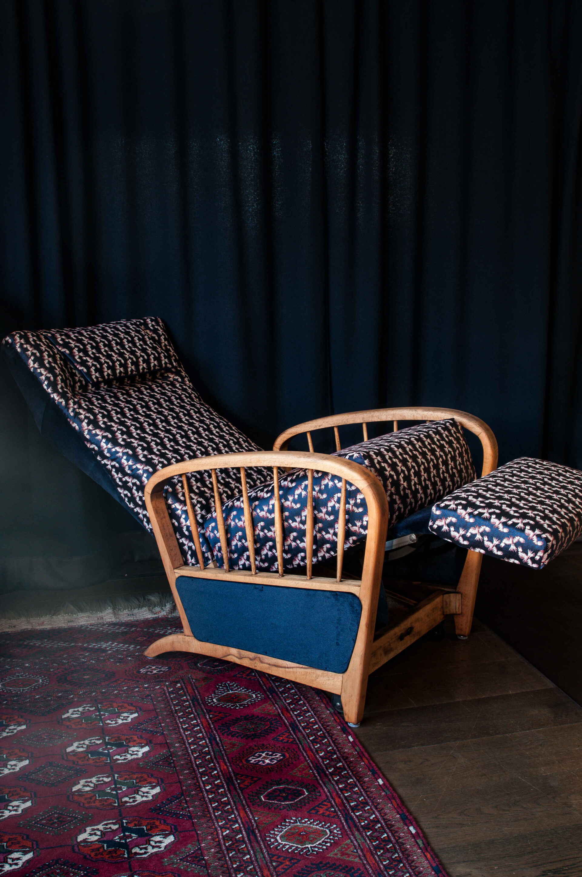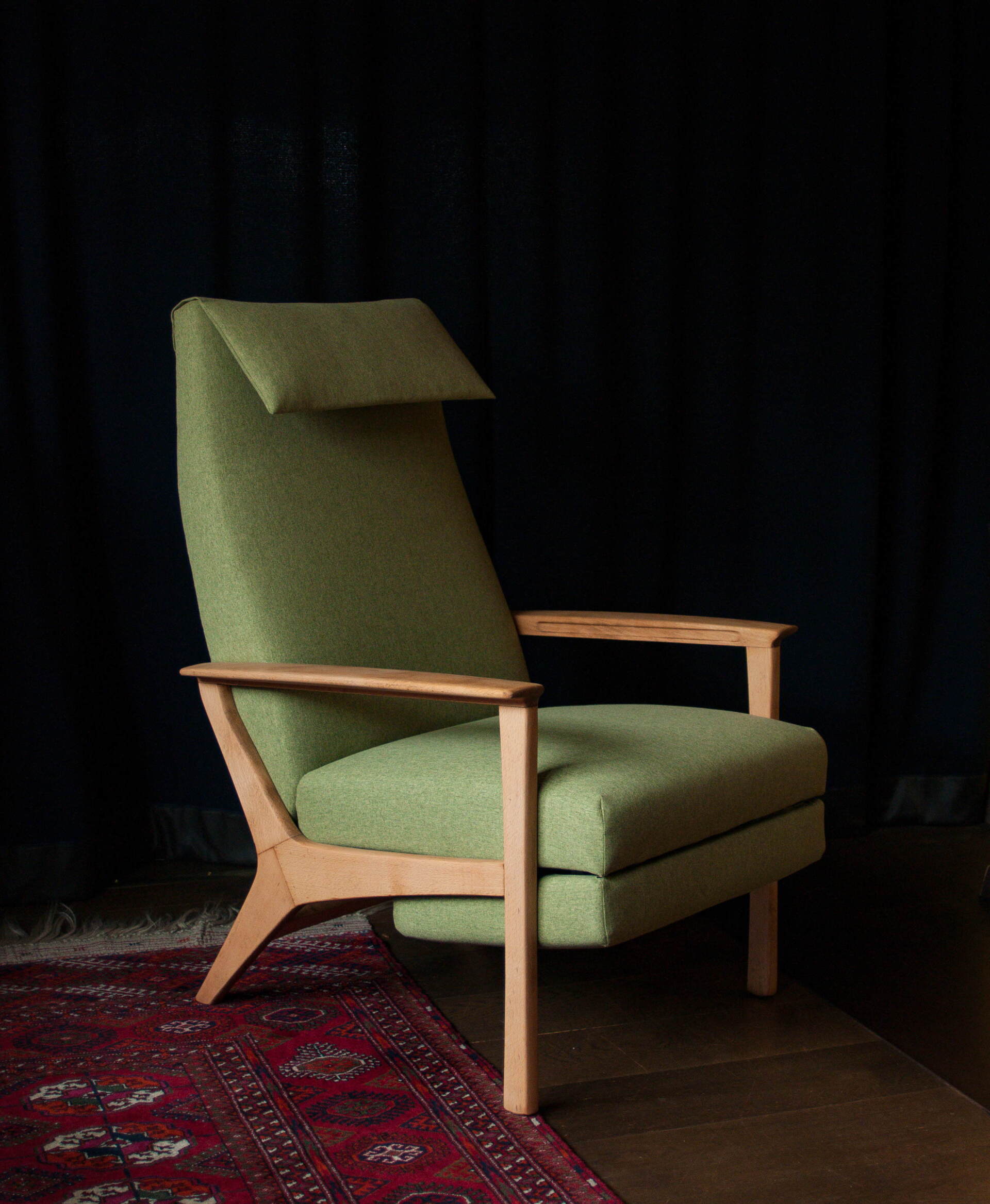 Bezogen mit guten Stoffen mit hohen Scheuertouren, mit neuen Polstermaterialien und Federn, bereit für die nächsten 50 Jahre.