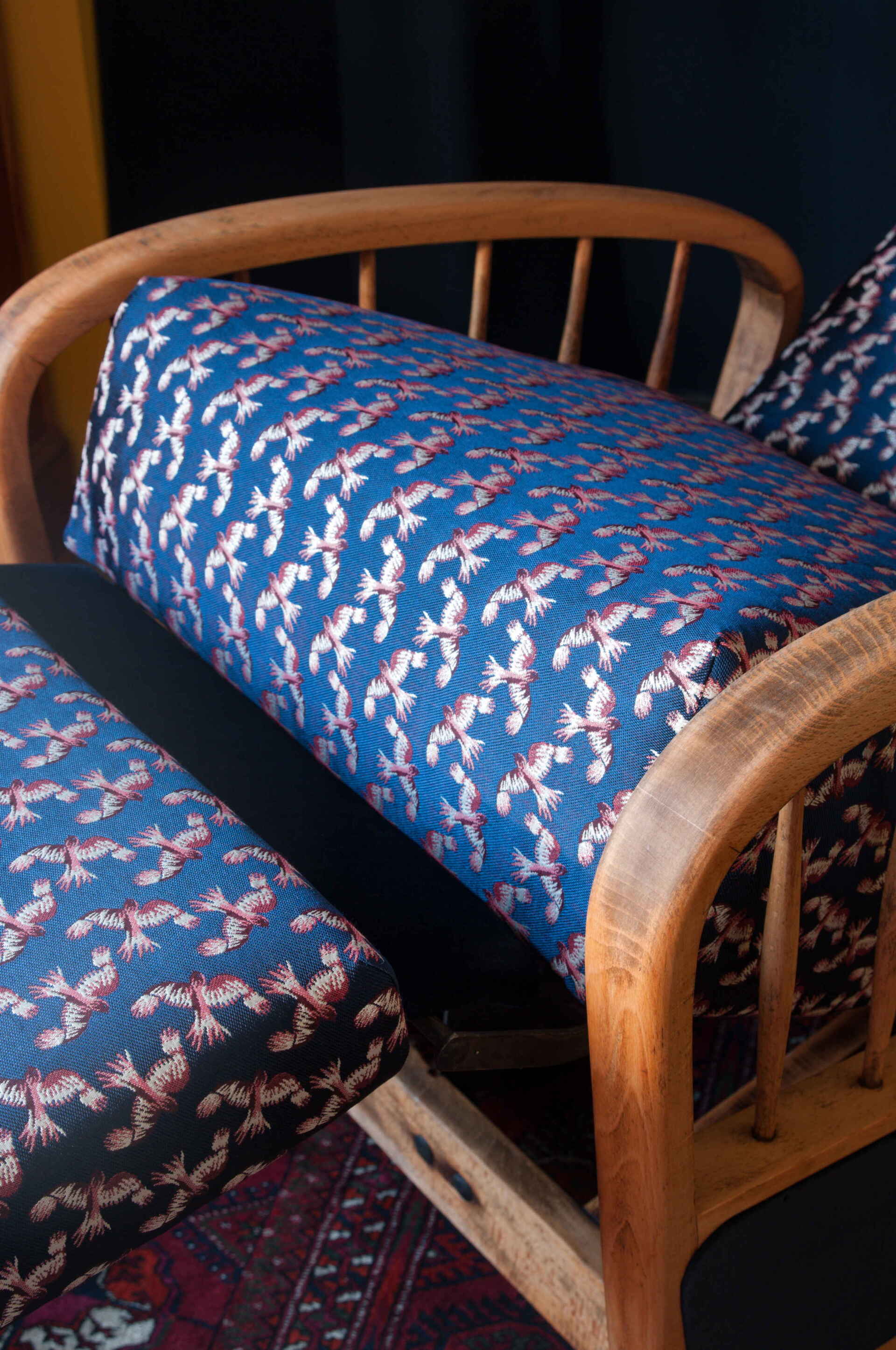 Die alte Polsterung wird entfernt, die Rahmen überarbeitet, neu gepolstert, und bezogen.